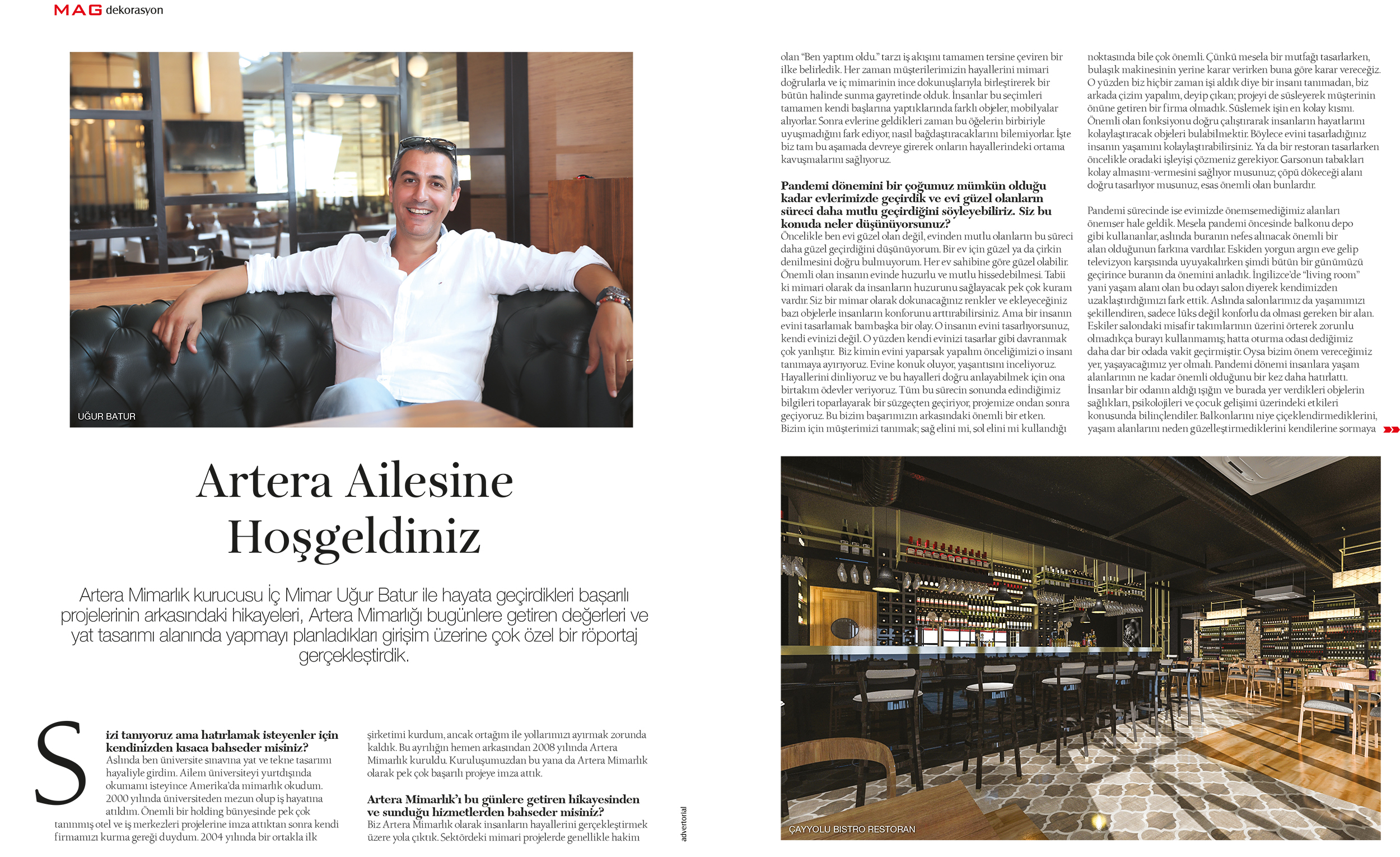 Artera Mimarlık kurucusu İç Mimar Uğur Batur ile hayata geçirdikleri başarılı projelerinin arkasındaki hikayeleri, Artera Mimarlığı bugünlere getiren değerleri ve yat tasarımı alanında yapmayı planladıkları girişim üzerine çok özel bir röportaj gerçekleştirdik.